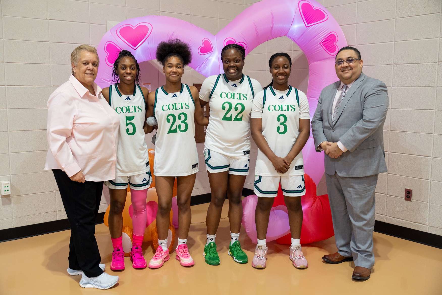 The event, which promotes cancer awareness and asks attendees to wear pink attire, had a special meaning for Colts freshman basketball standout Kendall Dixon, whose father James is fighting the disease. Ahead of the games, a special ceremony was held in tribute to Mr. Dixon, who was unable to attend, and the games were played in his honor.