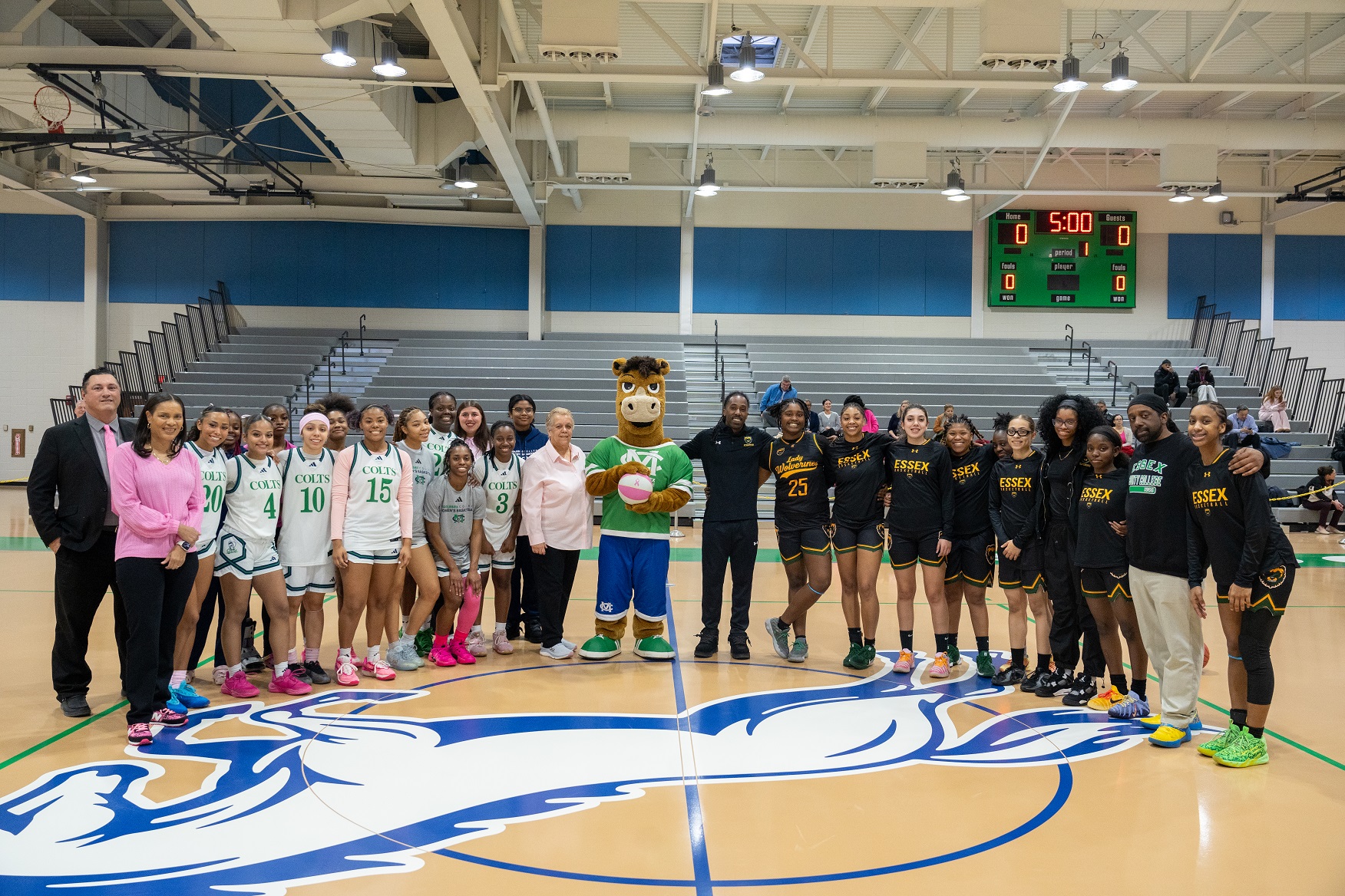 Pink Night was also a homecoming of sorts for both basketball teams, as the Colts gym renovation had the teams playing the bulk of their games on the road. The facility, with a capacity of just under 4,000, has now been upgraded with a new floor, new bleachers, new sideline chairs, and new curtain to subdivide the space to allow for more than one team to practice.