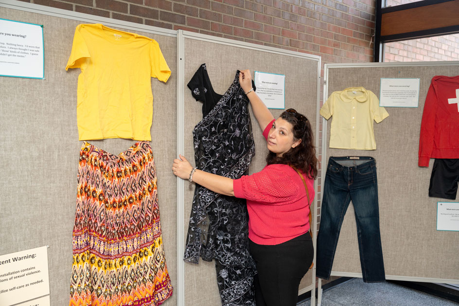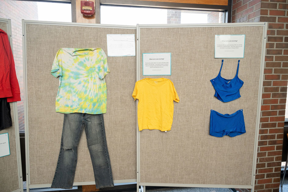 Each year, the Middlesex College Democracy House Center and Civic Engagement and Community Partnerships display a What Were You Wearing? installation in recognition of Sexual Assault Awareness Month. The art installation features re-creations of the clothing survivors were wearing when they were assaulted.